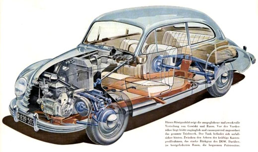 Outra curiosidade sobre os modelos DKW era que funcionavam com motores "dois tempos", uma tecnologia que hoje está abandonada para automóveis, mas ainda é usada para motoserras, modelismo e aviões de pequeno porte, que precisam de motores mais leves com ótima relação peso x potência.